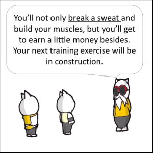 畑作業の次は建設現場で働くこと。