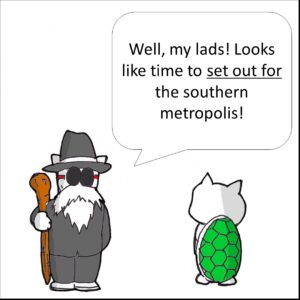「set out for」~に向けて出発する