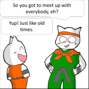 約1年ぶりの再会に喜ぶ仲間たち。