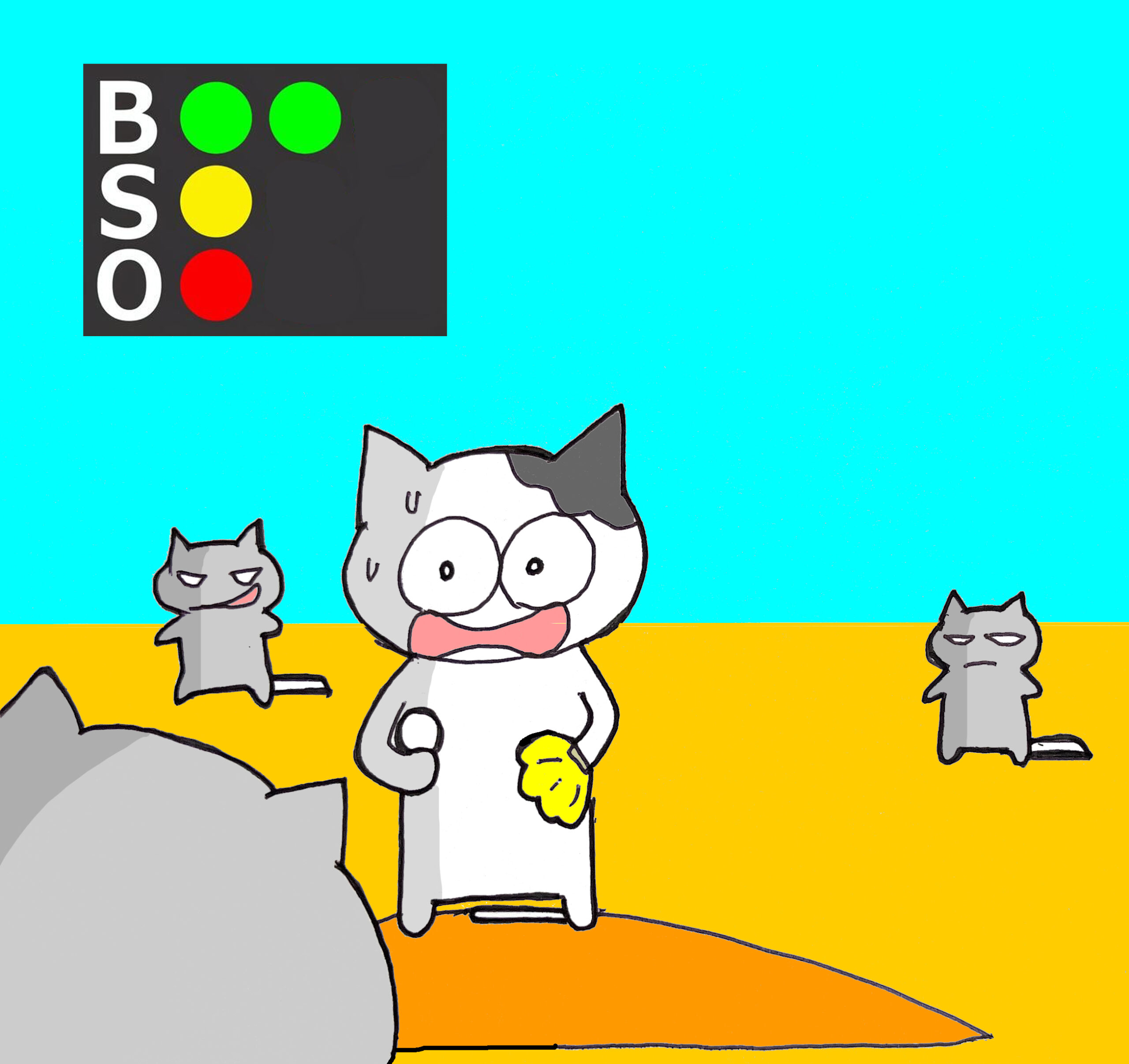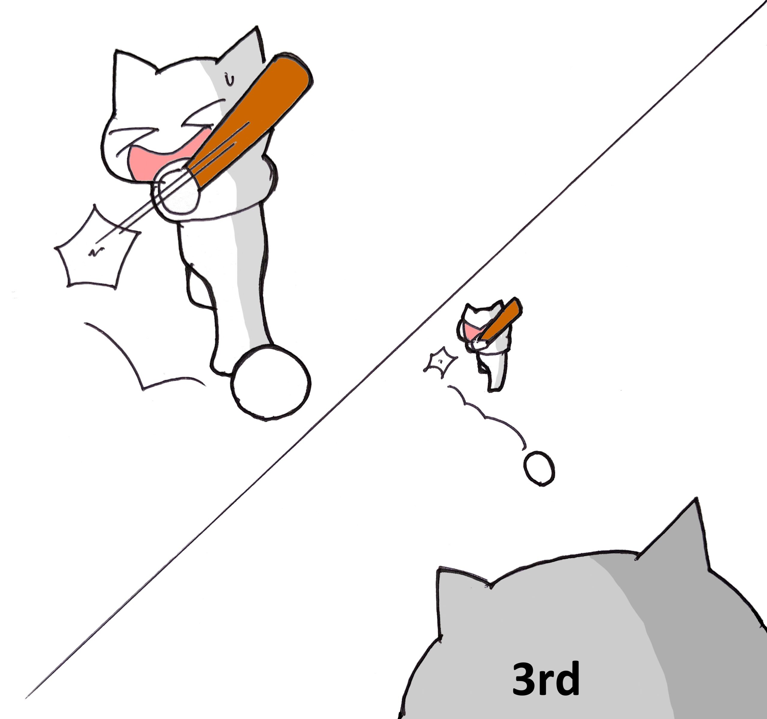 ③ バッター打つ(He swings)