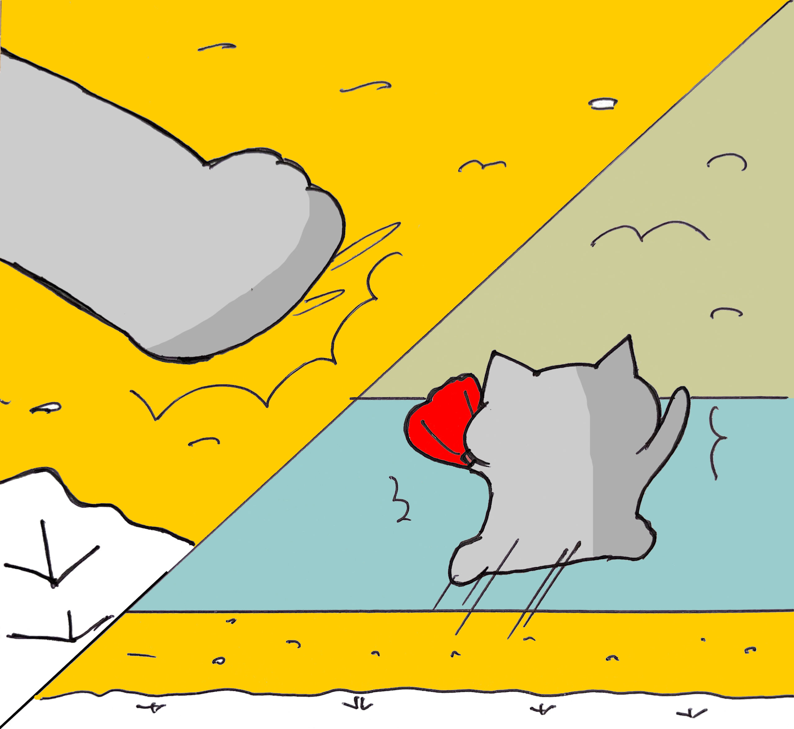 ④ ボールの動き(He hits a big fly to)